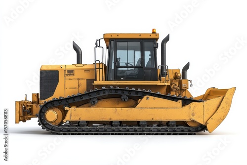 Yellow bulldozer machinery construction vehicles heavy equipment tracks work on white background. Generative Ai