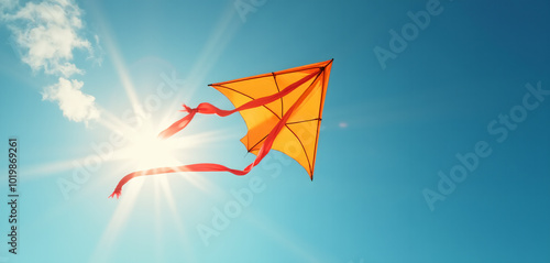 Yellow Kite Flying High: Sunny Day and Outdoor Fun