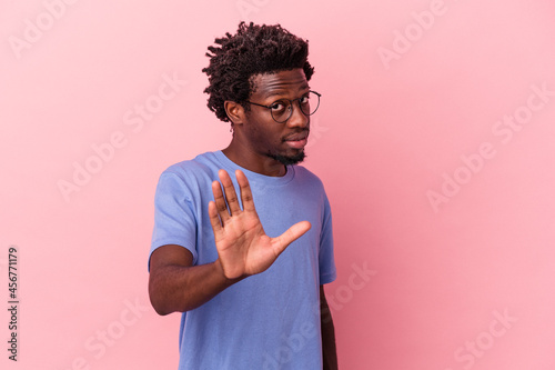 Young african american man isolated on pink background rejecting someone showing a gesture of disgust.