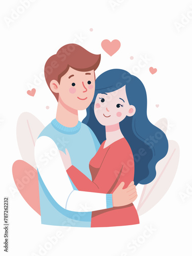 Young loving smiling couple boy and girl standing hugging embracing each other feeling in love vector illustration