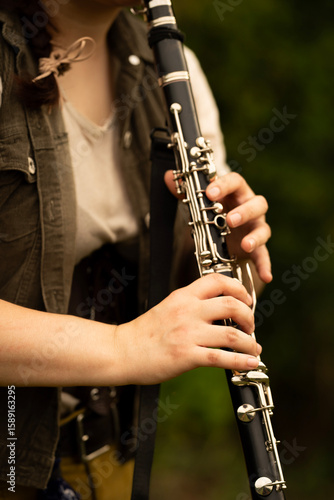 Young Musician Playing Clarinet Outdoors in Natural Light