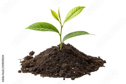 Young Plant Growing In Sunlight,The Sapling are growing from the soil with sunlight,small tree growing with sunshine in garden. eco concept, Young plant of pomelo in soil humus on a white background