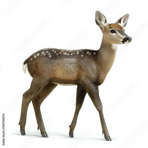 Young spotted deer, walking, isolated