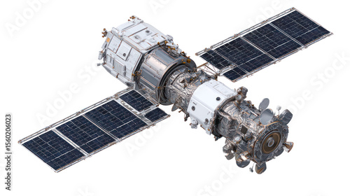 Orbiting Advanced Earth Observation Satellite - High-tech satellite orbiting Earth on transparent background