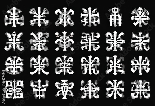 Repeating Adinkra Symbols in White on Black Background for BHM