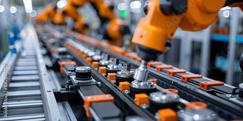 Robotic Arm Assembly Line in Industrial Facility, High-Tech Robotics in Modern Manufacturing