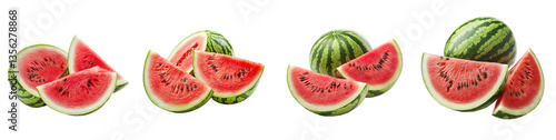 Slices of Juicy Watermelon Summer Fruit isolated with Transparent PNG