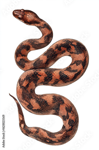 snake with dark brown and brown spots, full body view, isolated on a white background,