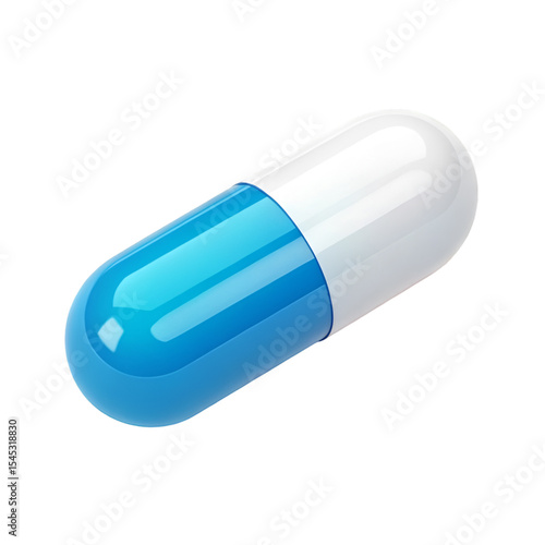 3 D Render Blue and White Capsule Icon Isolated pill