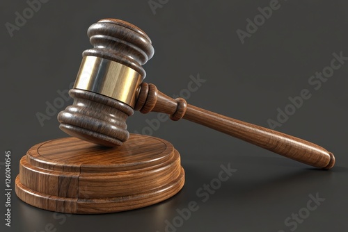 3D Gavel Element on Wooden Base with Transparent Background for Legal or Courtroom Use