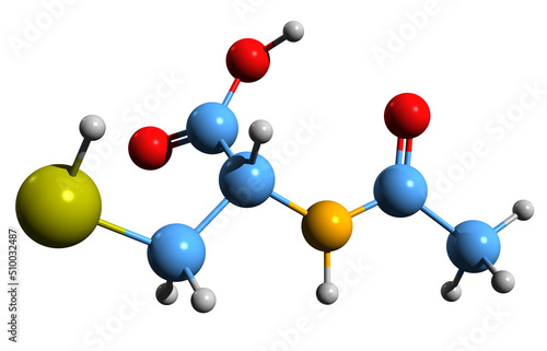 3D image of Acetylcysteine skeletal formula - molecular chemical structure of N-acetylcysteine isolated on white background