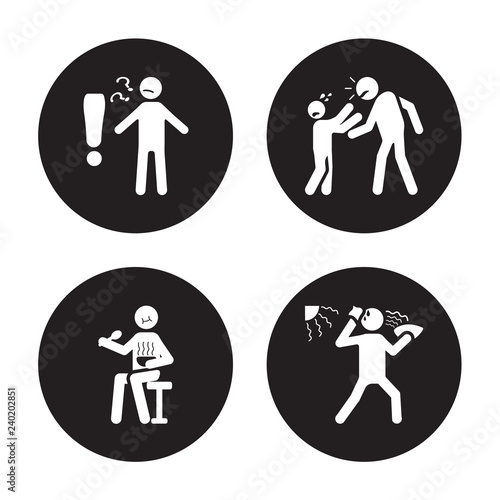 4 vector icon set : hungry human, horrible hot hopeless human isolated on black background
