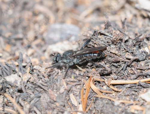 A Bee-mimic Robber fly Genus Laphria in Colorado natural habitat
