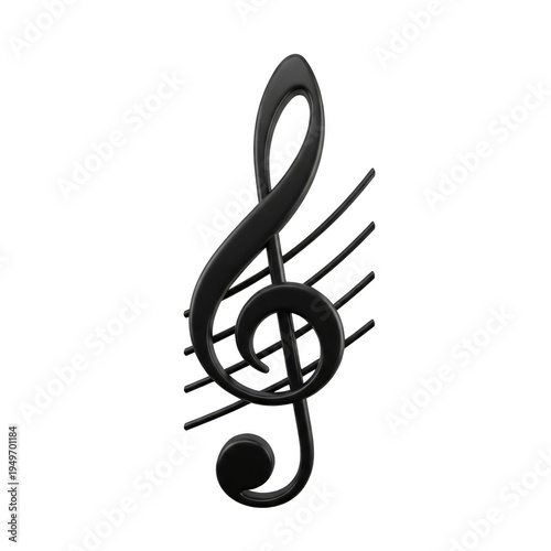 A black treble clef symbol with a unique, artistic design and a round, filled-in note. isolated on transparent background