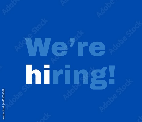 A bold and clear "We're Hiring!" message in blue and white on a solid blue background, perfect for job announcements, recruitment campaigns, and business communication.