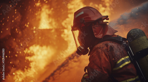 A Brave Firefighter Battling an Intense Blaze in a Dramatic and Heroic Scene Unfolding