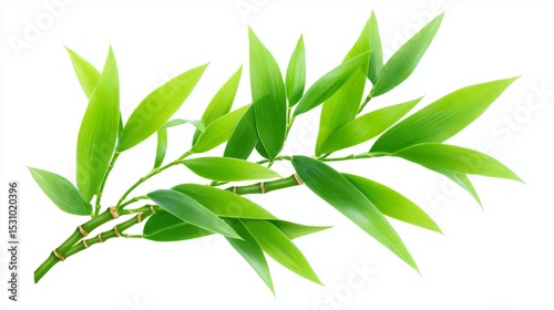 A captivating close-up highlights the refined beauty of fresh bamboo stalks, which are adorned with lush green leaves and embody the qualities of resilience and tranquility