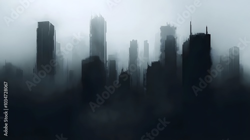 A city skyline seen through a dense layer of fog