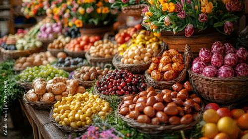 A Colorful Display Of Traditional Easter Foods And Desserts