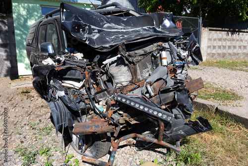 A completely destroyed car after an accident.