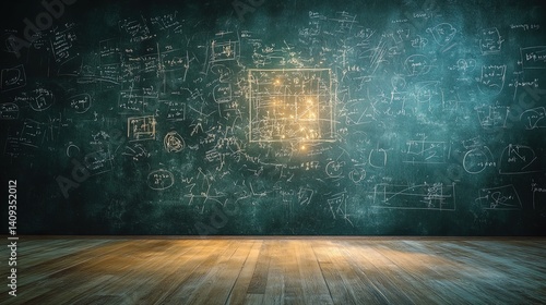 A creative image of a chalkboard filled with glowing mathematical formulas
