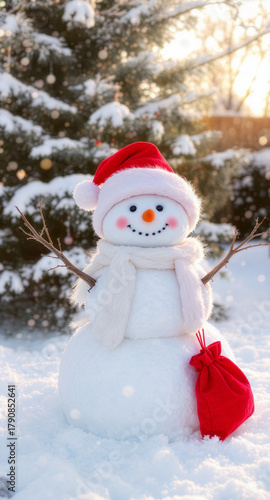 A Cute Snowman Dressed Up as Santa for the Christmas Holiday 108