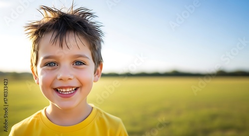 A delightful little girl with a radiant smile, her joy and innocence shining against a serene, light blue studio background
