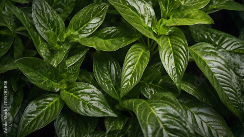 A detailed close-up of lush green leaves with droplets of water, ideal for eco-friendly branding.