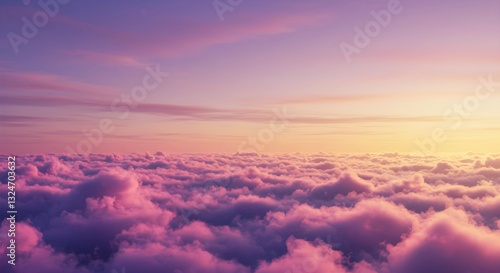 A dreamy cotton candy sunset with pink, purple, and golden clouds stretching across the horizon, ultra-realistic, soft glow, cinematic lighting.