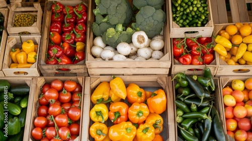 A farmer's market displaying a variety of fresh vegetables neatly displayed on display.