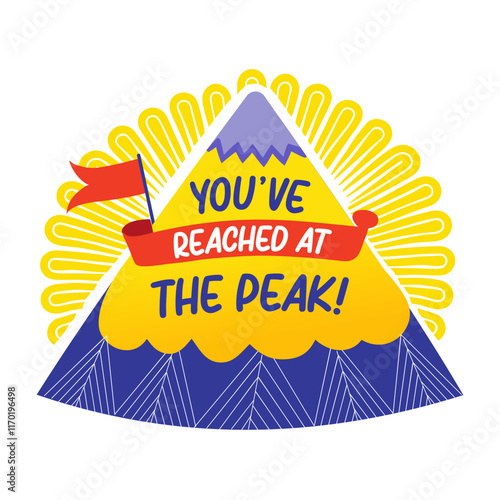 A flat sticker of a mountain peak with motivating typography