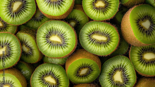 A full-frame close-up of a dense pile of fresh kiwis