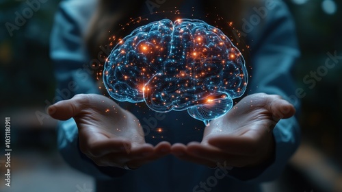A glowing brain held in hands, symbolizing knowledge and creativity.