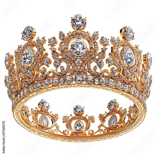 A golden diamond crown, rich in jewelry and ornamentation, represents royal luxury and elegance.