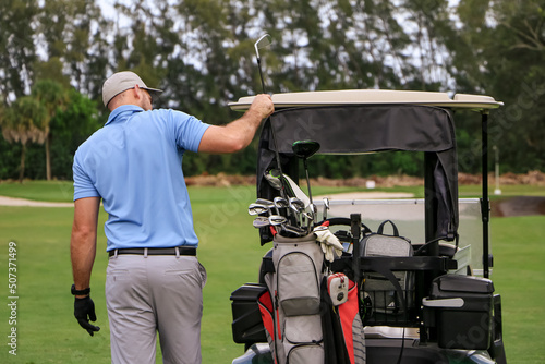 a golfer picking out a club
