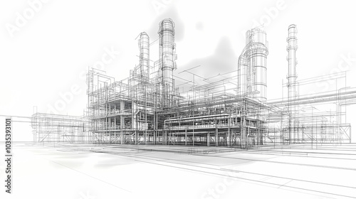 A horizontal banner with units for the oil industry. A 3D illustration of an architecture building based on imagination