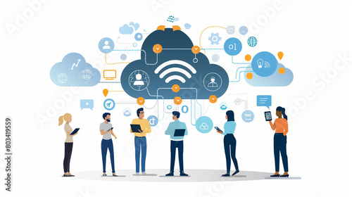 A Information Technology Illustration: Digitalization, Cybersecurity, Cloud Computing, Web Service, SAAS