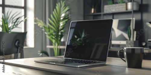 A laptop computer sitting on a wooden desk, ideal for home office or study space