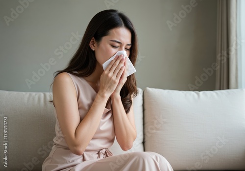 A Moment of Discomfort: Capturing the experience of seasonal allergies, an individual delicately uses a tissue to find relief. This image reflects daily challenges.