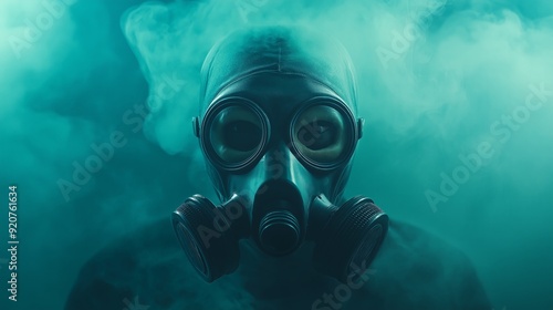 A mysterious figure wearing a gas mask surrounded by eerie smoke, evoking a sense of suspense and intrigue.