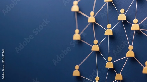 A network of interconnected human figures represents social connections and collaboration against a blue background.