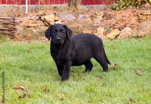 a nice black labrador puppy in autumn