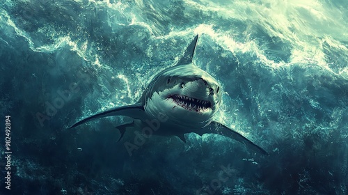 a painting of a shark in the ocean