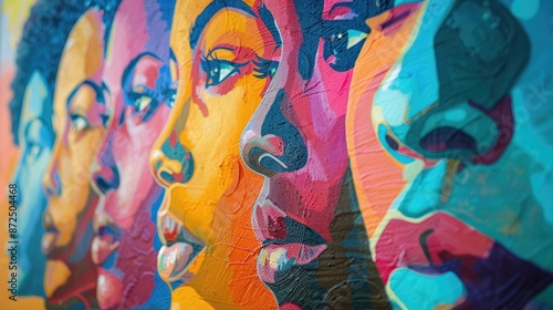 A painting of several women's faces with different colors. The painting is titled "The Faces of Diversity"