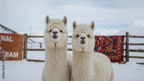 A pair of alpacas during the cold season