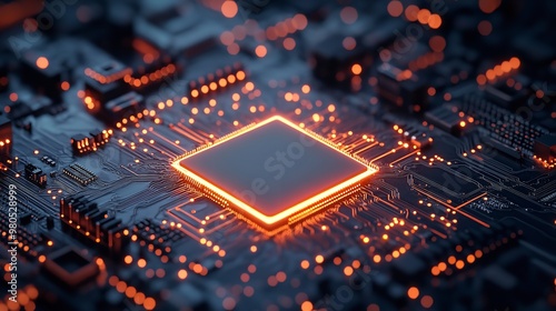 A processor unit that uses artificial intelligence. Powerful Quantum AI component on PCB motherboard with data transfers.
