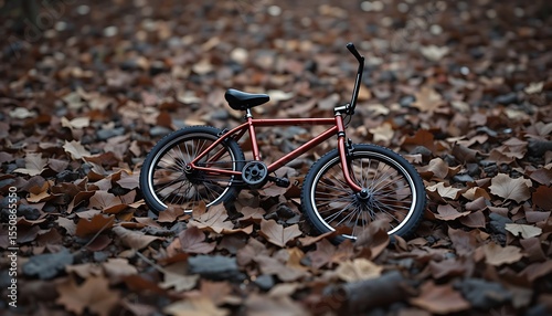 A Red BMX Bicycle Resting on a Bed of Autumn Leaves