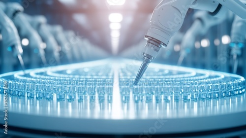 A robot assembly line in a circular formation, with robotic arms working in sync