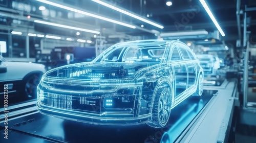 A robotic arm automating processes in a modern car manufacturing factory.
