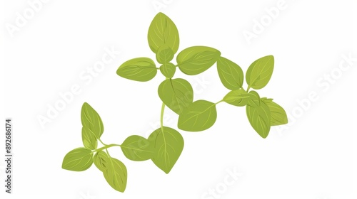 A simple illustration of oregano leaves, with only one in the center, is a symbol of art. Dynamic on a clean white background.